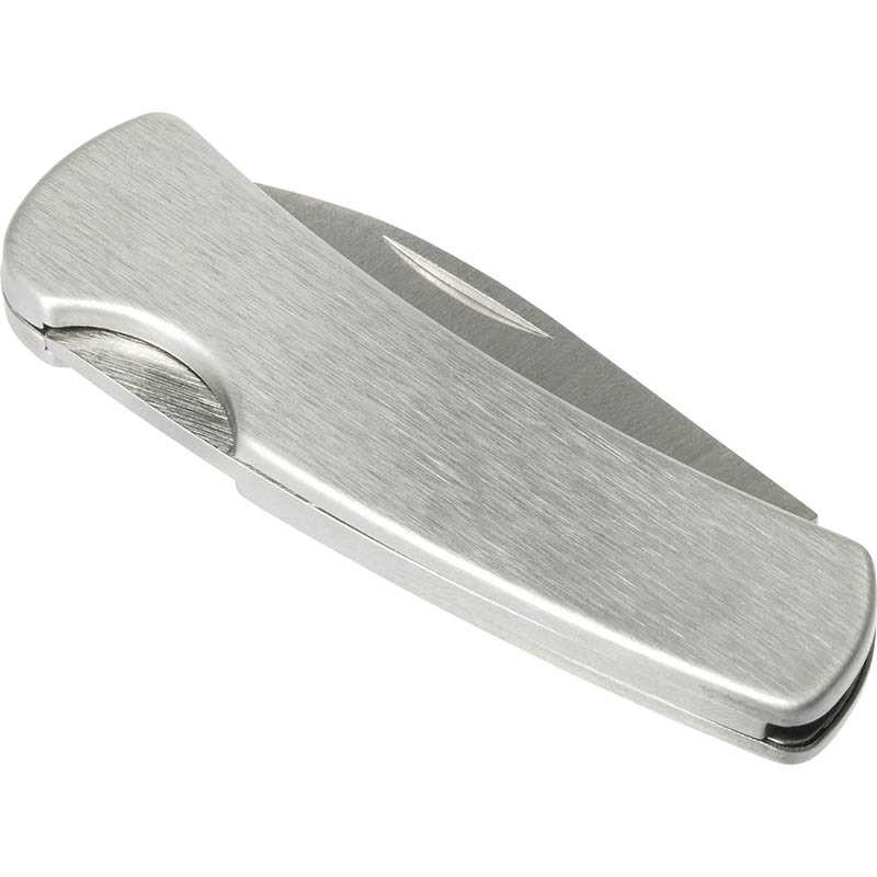 Vreckový nôž z nerezovej ocele s 5 funkciami a hliníkovou rukoväťou.