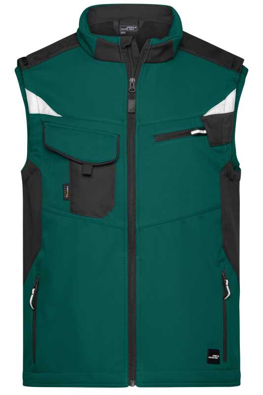 Odolná PRACOVNÍ Softshellová vesta.Vodě a větru odolná.Vodní sloupec 2.000 mm, paropropustnost (2.000g/m2/24h).Části bundy jsou z materiálu Cordura.Zip s klopou, boční kapsy na zip, náprsní kapsa, vnitřní kapsy.Reflexní detaily na rukávech a na zádech .Ba