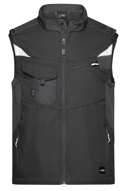 Odolná PRACOVNÍ Softshellová vesta.Vodě a větru odolná.Vodní sloupec 2.000 mm, paropropustnost (2.000g/m2/24h).Části bundy jsou z materiálu Cordura.Zip s klopou, boční kapsy na zip, náprsní kapsa, vnitřní kapsy.Reflexní detaily na rukávech a na zádech .Ba