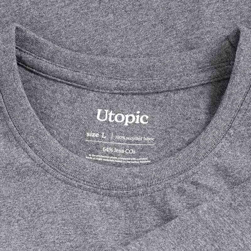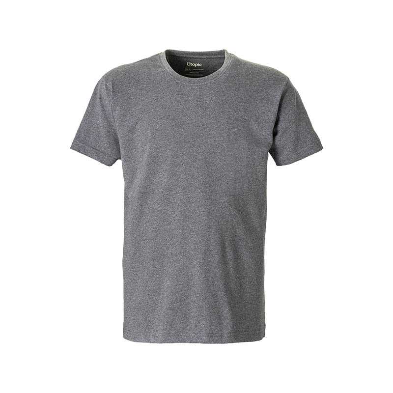 100% regenerated single jersey fabric. Unisex short sleeve T-shirt, double layer ribbed collar with double stitching, reinforcement tape at neck, side seam construction. 145 g/m2. 60% re