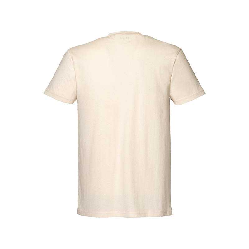 NOVINKA 2024. 100% regenerated single jersey fabric. Unisex short sleeve T-shirt, double layer ribbed collar with double stitching, reinforcement tape at neck, side seam construction. 145 g/m2. 60% recycled cotton/ 40% recycled polyester