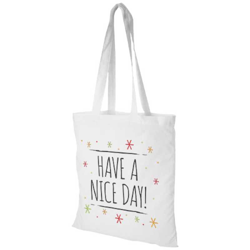 Ekologická taška z přírodní bavlny (140 g/m2) s dlouhými uchy. Dodatečné prošití u držadel zajišťuje větší odolnost tašky.