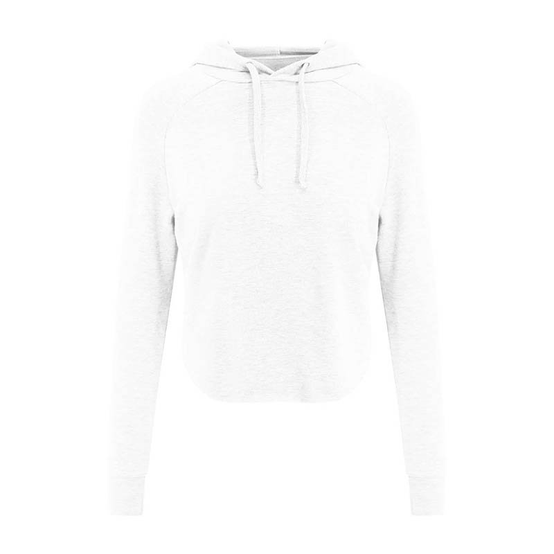 60% Polyester 35% Cotton 5% Elastane. Ultimate 4-way stretch for ease of movement. Unique cross back styling. Attached two panel hood. Crooped length. Flattering dropped curved hem at front. Simple tearout label, perfect for rebranding. Wicking quick dry fabric. Self fabric cuffs and hem. Flat lock stitching. UPF 40+ UV protection.