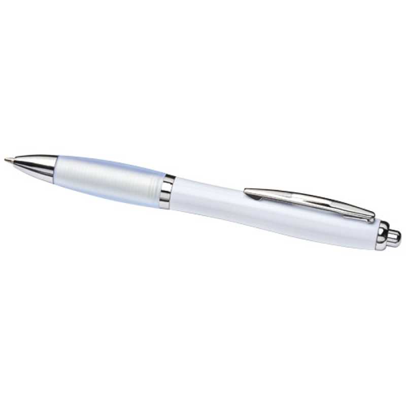 Plastové guľôčkové pero s modrou náplňou a výnimočným klipom.