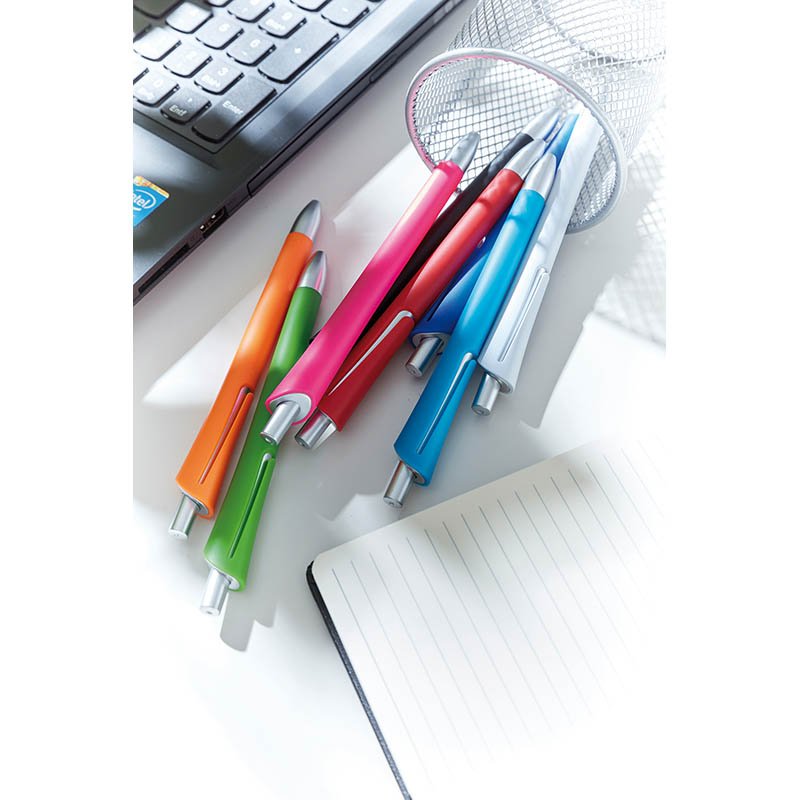ABS guľôčkové pero s klipom dostupné v širokej škále farieb. Modrý atrament. o10 x 145 mm