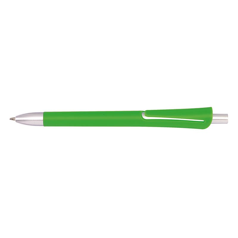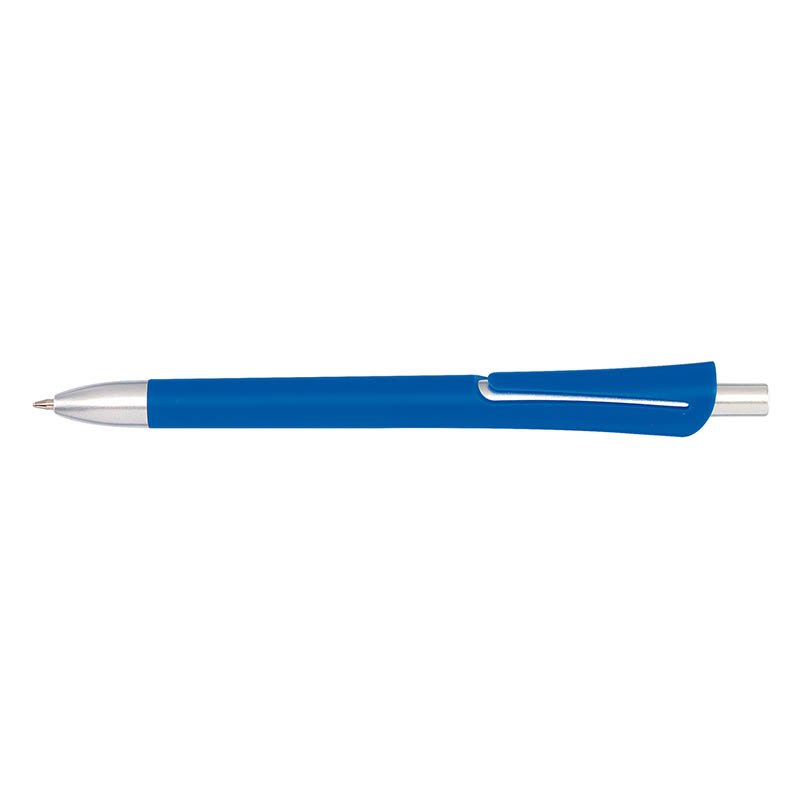 Plastové guľôčkové pero s farebnými doplnkami a chrómovou špičkou. Dodávané s modrou náplňou.