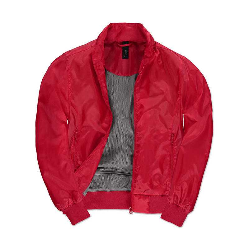 TRENDY LIGHTWEIGHT BOMBER JACKET ·Ergonomic concealed hood ·Diamond mesh lining ·Trendy lightweight bomber jacket with ergonomic concealed hood ·Fashionable contrasted mesh lining improves breathability and comfort ·Contemporary cotton feel heavy rib on cuffs and bottom hem ·Forward shoulder seams for better comfort and water protection · Zip at lower back for easy full decoration access (front - back - sleeves) ·Fabric tested for all print techniques and embroidery ·2 zipped hand pockets. Značka:B&C. Materiál:100% polyester 210T taffeta