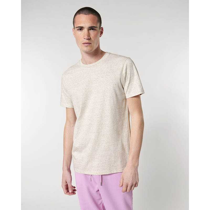 Short-sleeve UNISEX t-shirt. Single Jersey. 100% Organic RingSpun Combed Cotton. 160 g/m2. Ribbed knit round neck 1x1 with elastane to increse elasticity. Shouldre-to-shoulder reinf