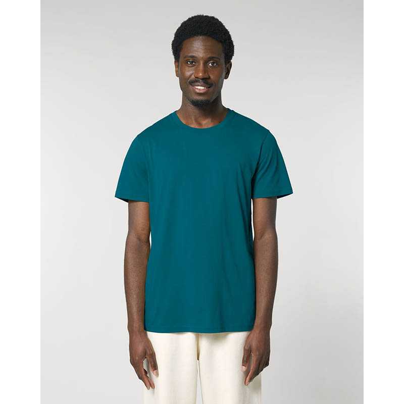 Soft combed cotton T-shirt for men with a very light feel and a fashionable rolled collar. The fine structure gives these T-shirts a premium look and high elasticity.rolled self-fabric collar, double stitched hem and sleeve hems, neck tape, side seams, small size label in the collar, care label in the side seam