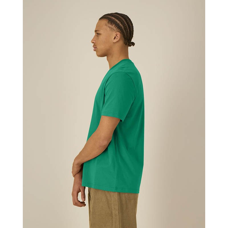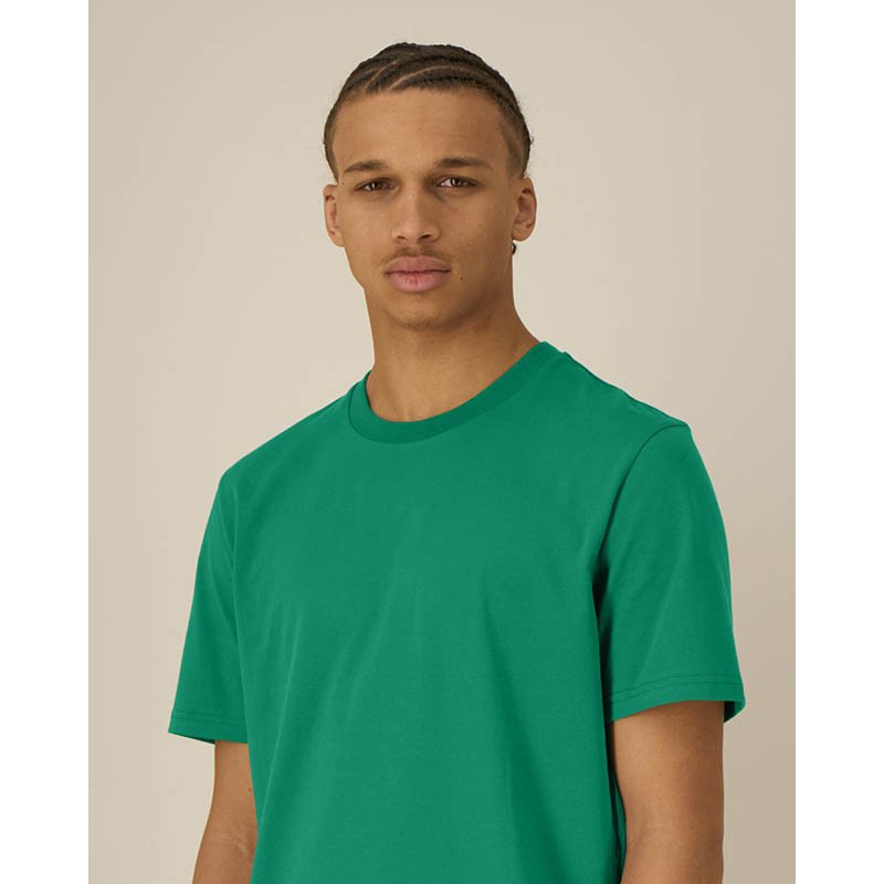 Soft combed cotton T-shirt for men with a very light feel and a fashionable rolled collar. The fine structure gives these T-shirts a premium look and high elasticity.rolled self-fabric collar, double stitched hem and sleeve hems, neck tape, side seams, small size label in the collar, care label in the side seam