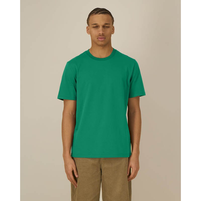 NOVINKA 2022. Modernt fit T-shirt with reinforcement at shoulder seams and double-stitchings around neck. Elastane in neck rib. Neck rib with with four layers for better stability. • 100% cotton • 160 g/m2 • 900 black, 120 grey melange (85% cotton, 15% viscose), 100 white, 173, sand, 600 navy, 523 petrol, 730 lime, 208 lemon, 400 red • XS–5XL