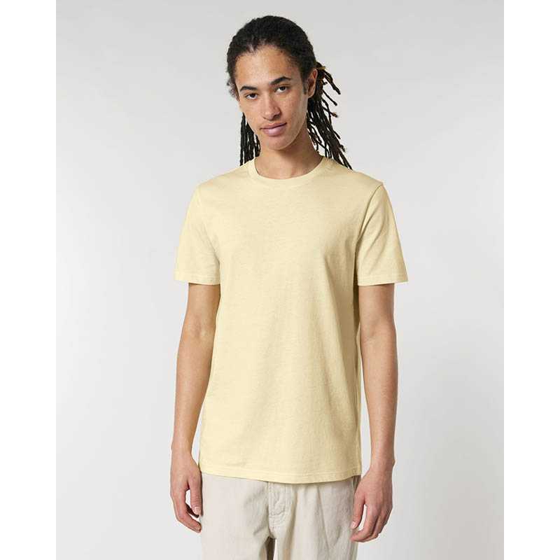 Soft combed cotton T-shirt for men with a very light feel and a fashionable rolled collar. The fine structure gives these T-shirts a premium look and high elasticity.rolled self-fabric collar, double stitched hem and sleeve hems, neck tape, side seams, small size label in the collar, care label in the side seam