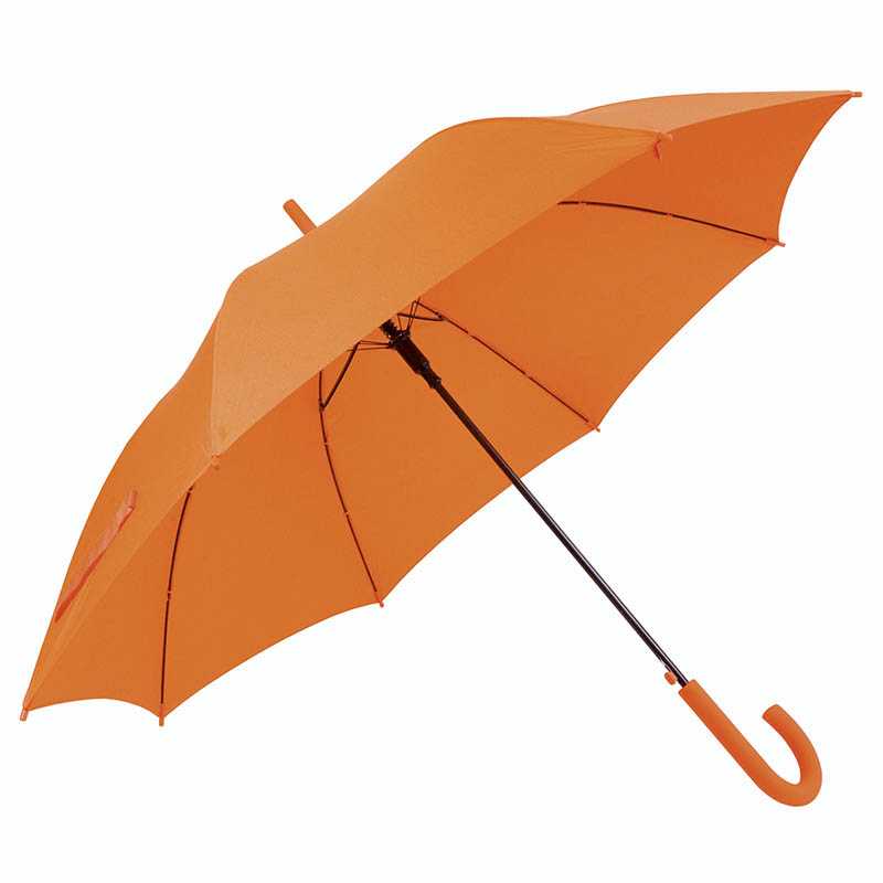 Automatic umbrella LAMBARDA: with metal shaft, fibreglass ribs, metal tips, rubber-coated crook handle with integrated press button, polyester pongee canopy with special water-resistant coating, closing strap with touch fastener