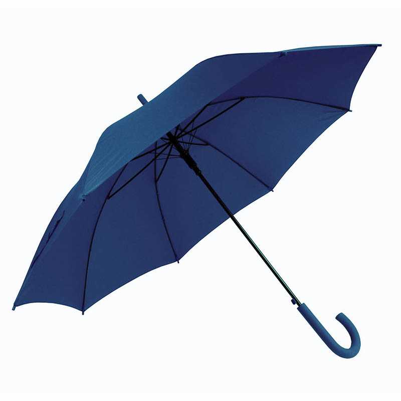 Convenient automatic function for quick opening, Windproof system for higher flexibility and stability in windy conditions, flexible fibreglass ribs, dull black plastic crook handle, higher corrosion protection due to galvanized steel shaft. Also available as golf umbrella (art. 2359).