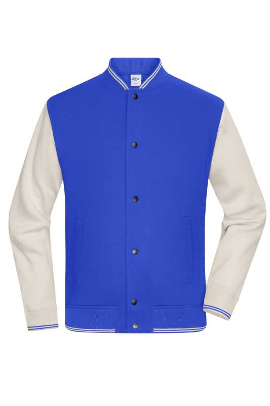 NOVINKA 2025. College mikina Kombinace bio bavlny a recyklovaného polyesteru Zapínání na druhy Rozepínání na zip, 2 boční kapsy Límec a náplety u pasu a rukávů mají kontrastní proužky