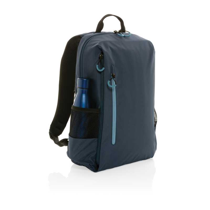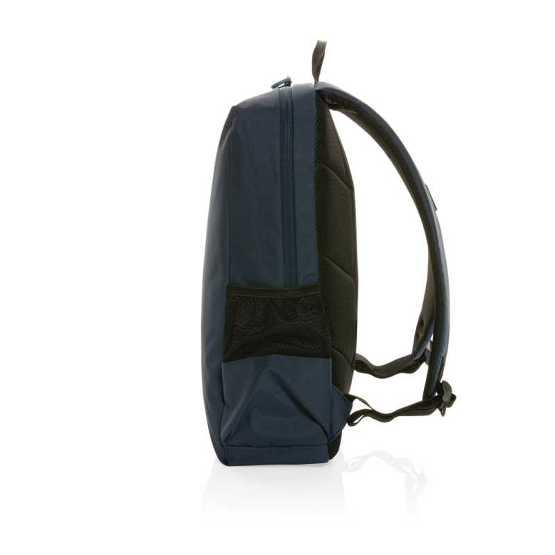 Praktický batoh do kancelárie aj mimo ňu. Jeho eleganciu podtrhuje moderný minimalistický dizajn. Hlavný oddiel s priestorom pre až 15,6" notebook a 2 otvorenými priehradkami na drobnosti. Vrchné ucho z PU, polstrované popruhy aj zadná časť pre pohodlné nosenie. Vonkajšie aj vnútorné časti sú vyrobené z recyklovaného polyesteru. Vrátane skenovateľnej zložky AWARE ™ garantujúcej obsah recyklátu . Na výrobu bolo využité 9,01 500ml PET fliaš . Z výťažku každého predaného produktu z kolekcie Impact prispievame 2% na podporu iniciatívy Water.org.