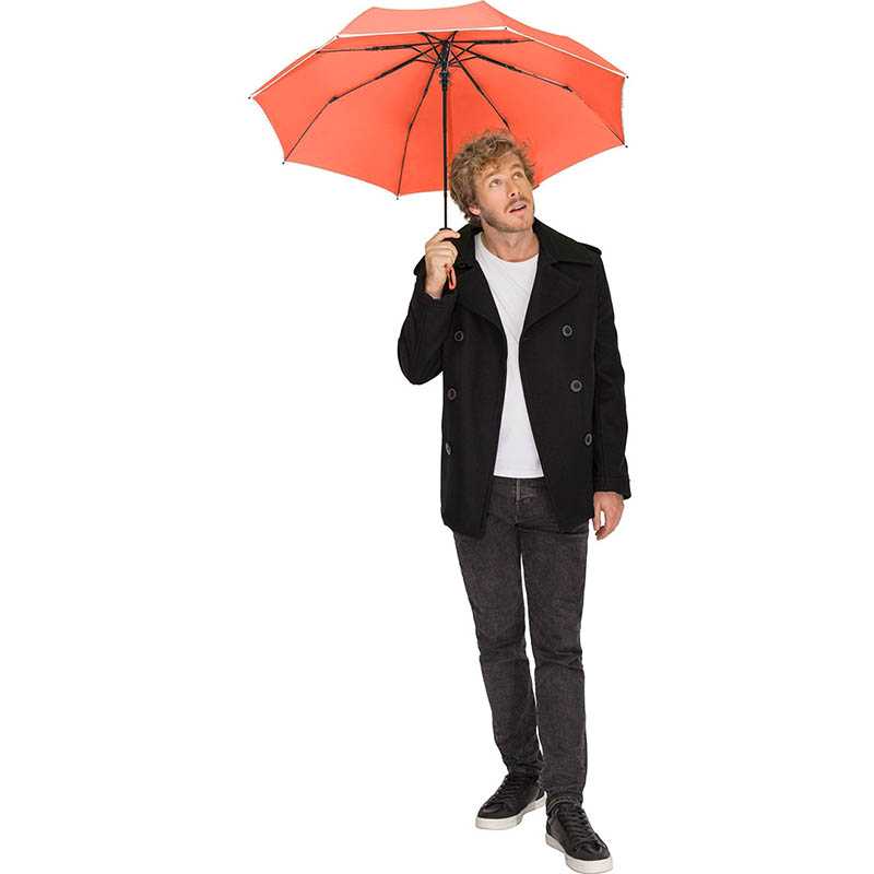 Convenient automatic open/close function for quick opening and closing, high-quality Windproof PLUS system for maximum frame flexibility in stormy conditions, comfortable Soft-Feel handle with integrated push-button, elastic loop and promotional labelling option