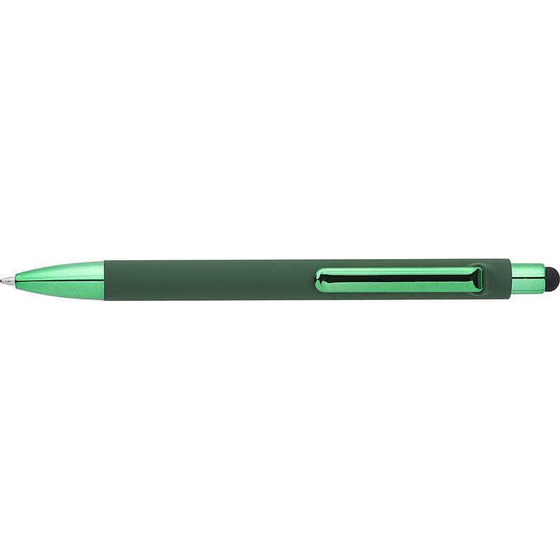 Twist pen with white plastic barrel and coloured aluminium grip, matching the touchscreen rubber tip