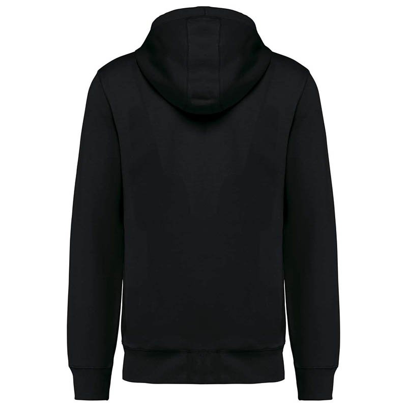 85 % organická bavlna/15 % recyklovaný polyester.Prstencovo spriadaná česaná bavlna.Rovný strih.3-vrstvový kartáčovaný flís, LSF (Low Shrinkage Fleece: predzrazený flís).1/2 kruhu vzadu.Klokanie vrecko.1 x 1 rebrovaný spodný okraj a manžety.Dvojité prešívanie na manžetách, prieramkoch, spodnom okraji a 1/2 kruhu.Podlepený výstrih vnútri na zadnej strane.Podšitá kapucňa z hlavného materiálu so zaväzovaním na šnúrku.Okrúhla šnúrka s recyklovanými kovovými koncovkami a očkami.