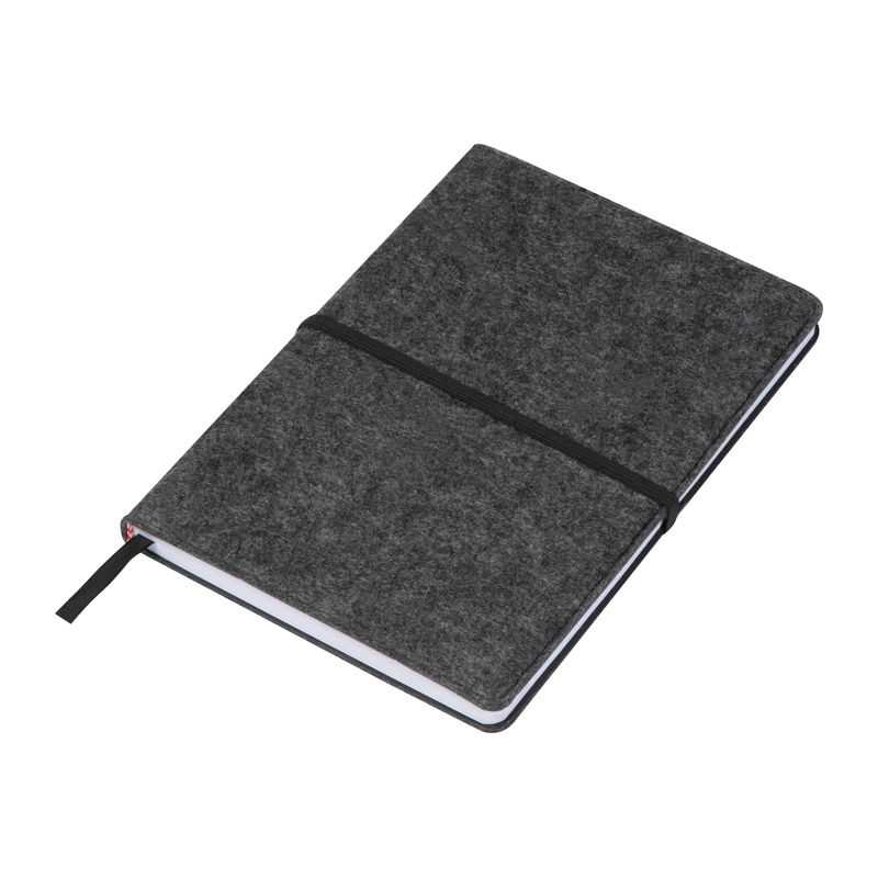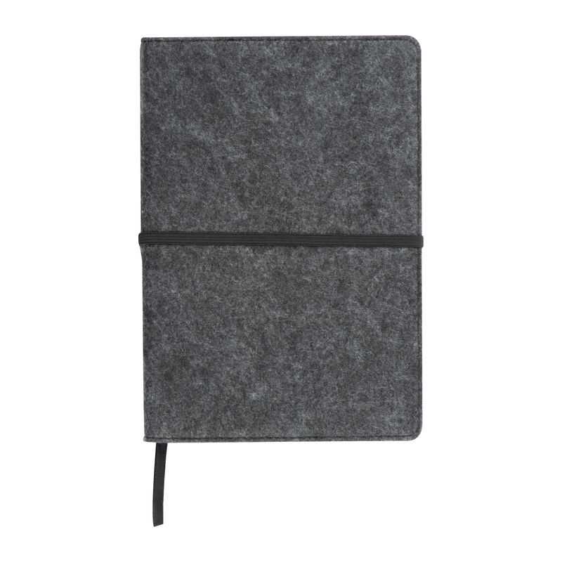NOVINKA 2025. Zápisník A5 s polotvrdým obalom z recyklovanej plsti (100% plsti rPET) s krúžkami. Obsahuje 160 linajkových strán na 100% recyklovanom papieri vo farbe slonovej kosti (70 g/m2). 155 x 219 mm