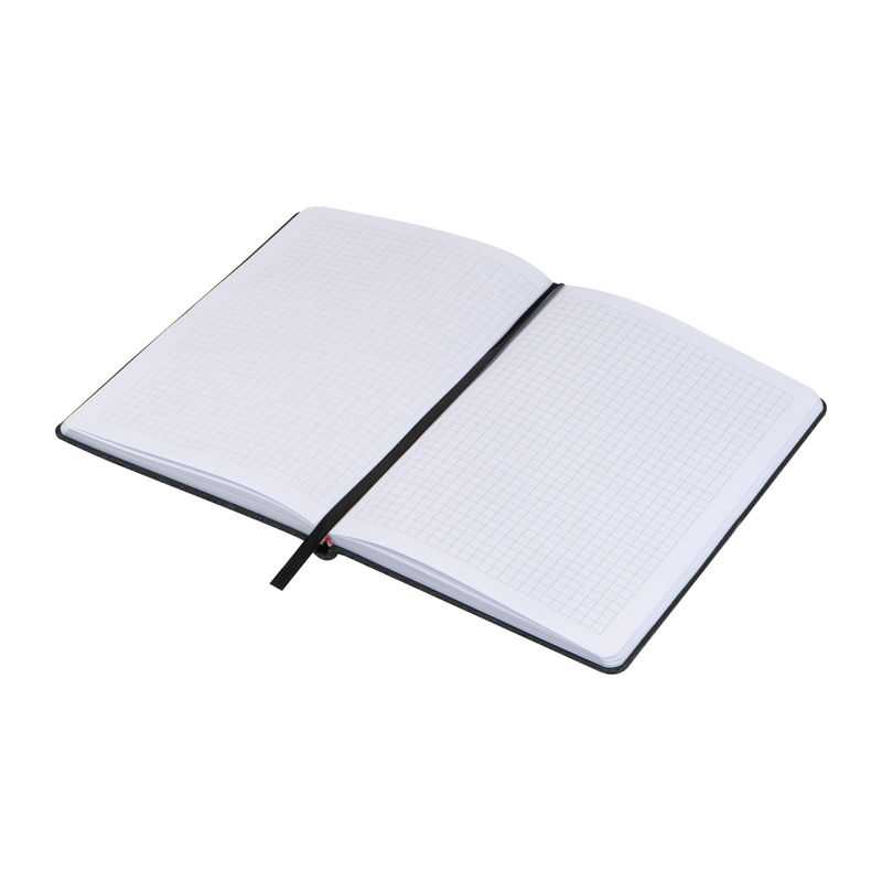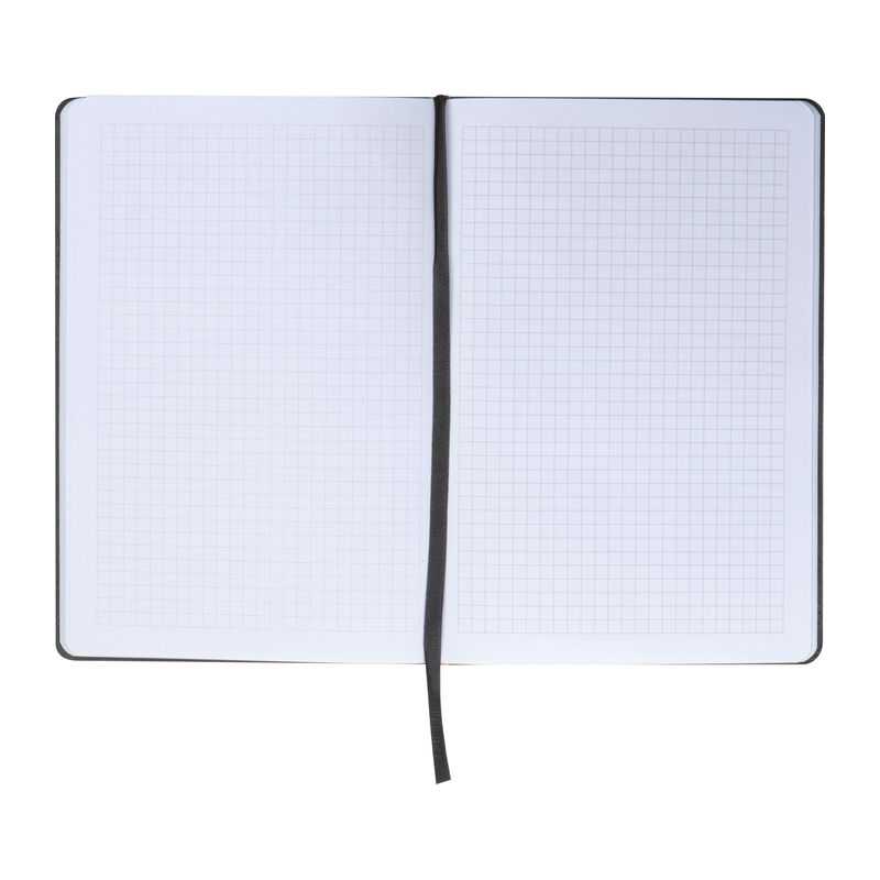 Poznámkový blok (A5) s plsteným vonkajším povrchom, záložkou, gumičkou na uzavretie a 192 kockovanými stranami (96 listov).