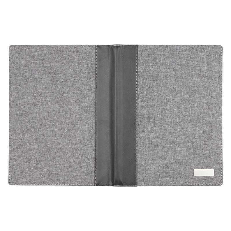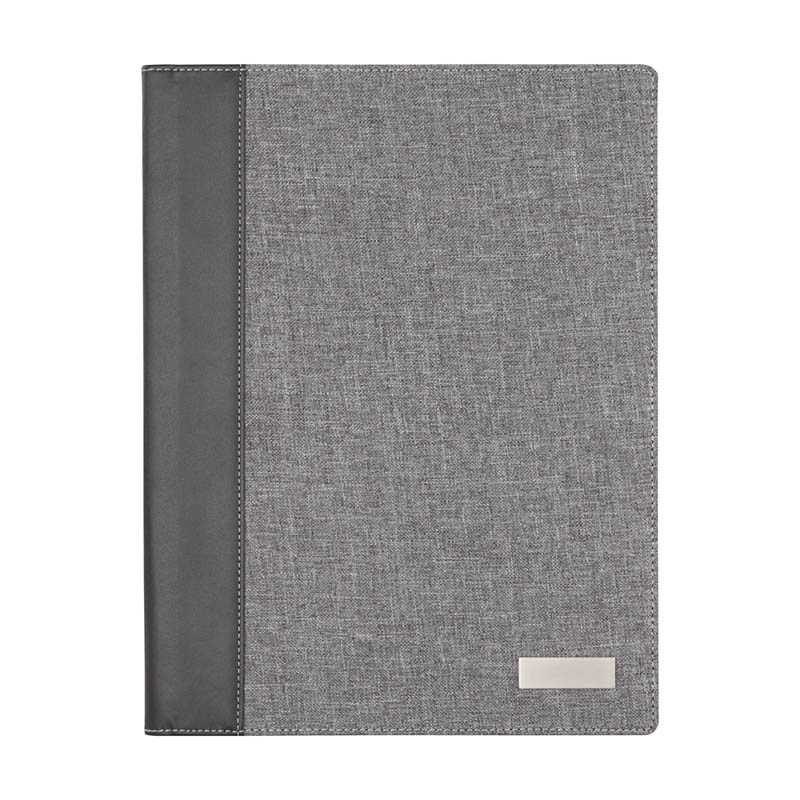A4 zakladač na dokumenty s doskami z PU kože a plátna s kovovým štítkom a s 20 listovým linajkovým blokom.