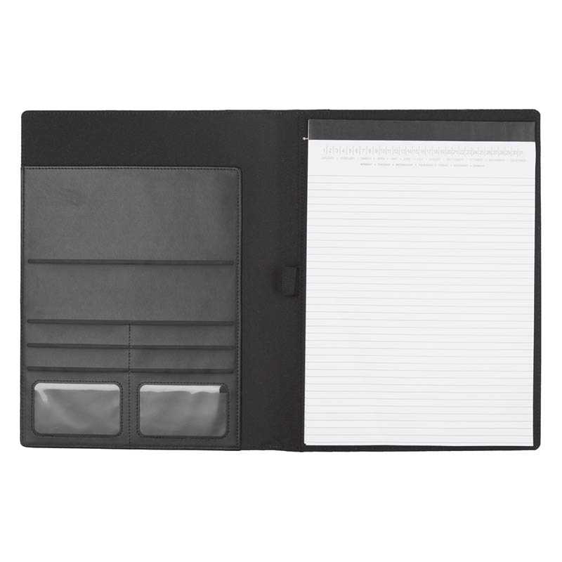 A4 zakladač na dokumenty z umelej kože s 20 listovým linajkovým blokom, držiakom na perá a priehradkou na vizitky.