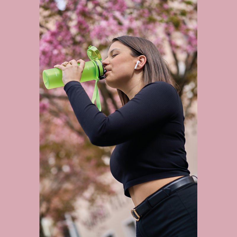 NOVINKA 2025. Fľaša na vodu vyrobená z recyklovaného PET bez BPA s certifikáciou RCS. Táto fľaša s veľkorysým objemom 800 ml je ideálna na tréning, cestovanie alebo kedykoľvek, keď potrebujete dodatočnú hydratáciu. Pútko slúži ako pohodlné držadlo, ideálne na prenášanie na cestách alebo zavesenie na cvičebné náradie. Vďaka ideálnemu tvaru sa zmestí do väčšiny držiakov na nápoje. Vhodné výhradne na studené nápoje. Možno umývať iba v ruke. Certifikované spoločnosťou RCS, táto certifikácia zaisťuje overenie celého dodávateľského reťazca recyklovaných materiálov. Výrobok obsahuje 68 % recyklovaného PET s certifikáciou RCS.