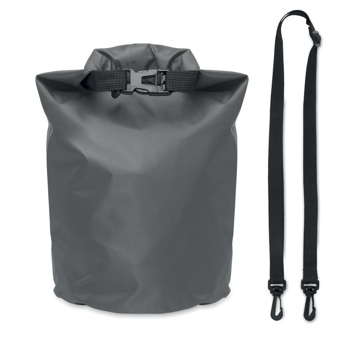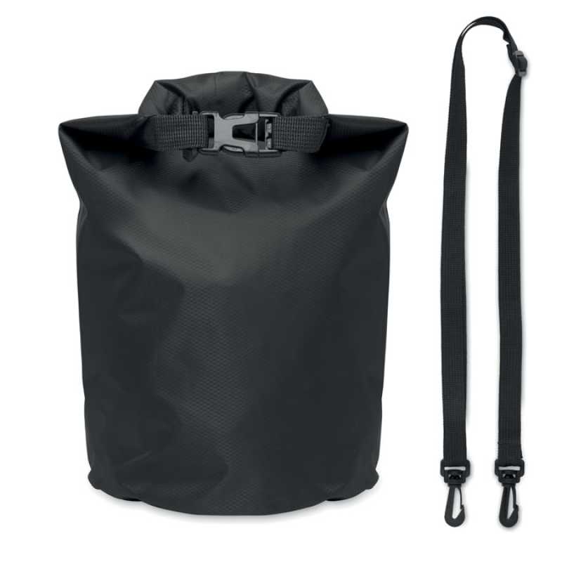 NOVINKA 2025. Vodotěsný (IPX6) vak z materiálu 210T RPET s ramenním popruhem. Objem 5 l.