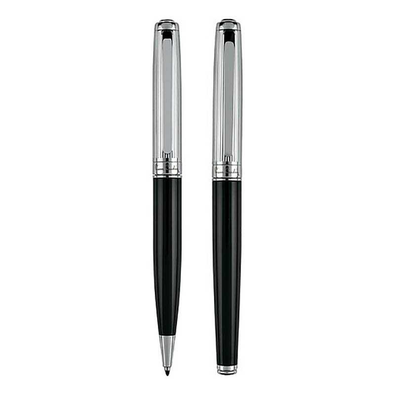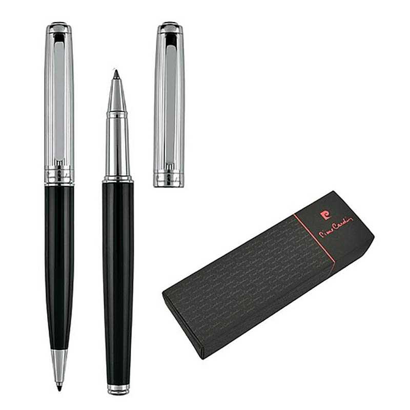 Značková kovová súprava guľôčkového pera a rollera Pierre Cardin. Spodná časť je v čiernom prevedení, vrchná strieborná časť je zdobená jemným rytím na povrchu. Guľôčkové pero má otočný mechanizmus, hrot rolleru je chránený strieborným vrchnákom. Roller obsahuje značkovú nemeckú náplň Schmidt v modrej farbe s hrotom 0,6 mm, guľôčkové pero obsahuje kvalitnú modrú náplň s hrotom 1 mm. Priložená je aj náhradná náplň v čiernej farbe. Balené v luxusnej krabičke Pierre Cardin, dodávané s certifkátom pravosti. Odporúčaná technológia potlače: gravír, kartička. Maximálna veľkosť potlače: 40 × 5 mm. Rozmery: guľôčkové pero 1,1 × 13,7 cm; roller 1,1 × 13,8 cm; balenie 17,5 × 5,5 × 3,5 cm. Kartónové množstvo v ks: 20.