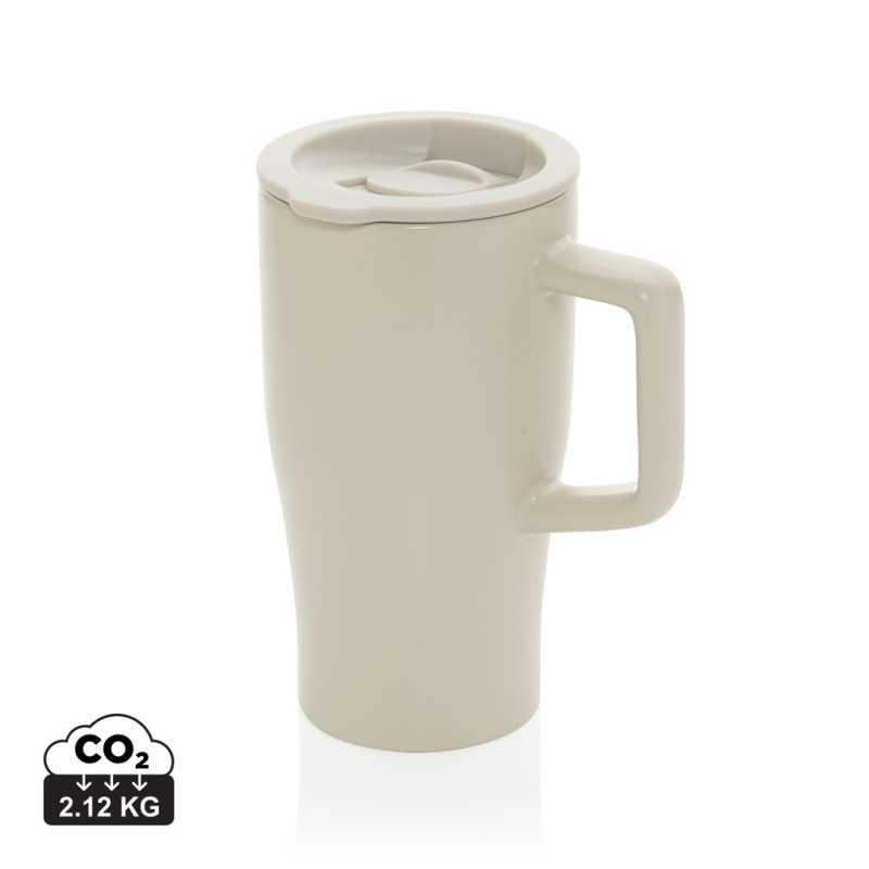 NOVINKA 2025. Thermal mug with double wall made from Recycled Stainless Steel and 400 ml capacity. Lid with easy open dispenser made of PP and BPA-free. Includes a Recycled Stainless Steel label.Steel is one of the most demanded materials and can be found almost everywhere, from daily use products to large constructions. With countless properties, among which durability and high recyclability stand out, making it a highly valued alternative in sustainability solutions. Properly treated, it allows obtaining new resources for infinite use.