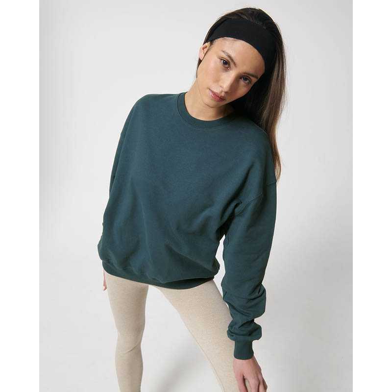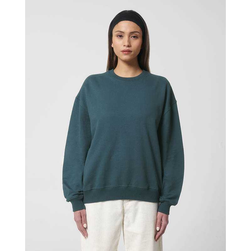 NOVINKA 2024. Well made sweatshirt in a comfortable material, soft and with a little heavier feel. Brushed inside. 2x2 rib around neck, cuffs and bottom. Material: 85% organic Fairtrade cotton, 15% recycled polyester Weight: 320 g/m2 Certyficates: GOTS Fairtrade Cotton Oeko-Tex