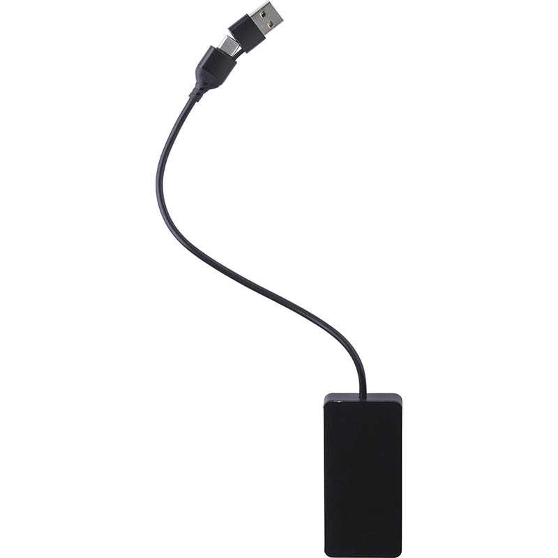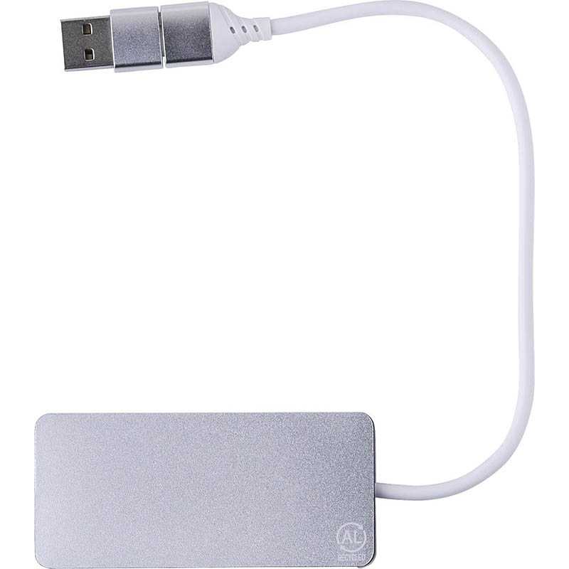 Aluminium USB Hub with 3 ports. Two USB A, one USB C port. Recycled logo engraved on the front.