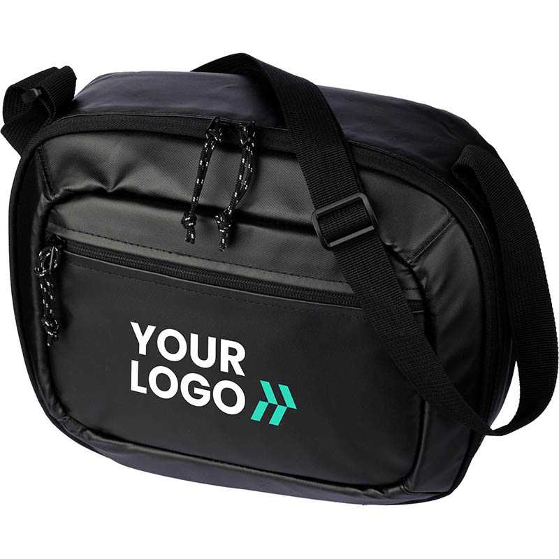 NOVINKA 2025. Polyester (600D) and TPE cooler waist bag with PEVA foil lining. Large zippered compartment on the topside and a zippered pocket on the front side. Long adjustable shoulder strap.