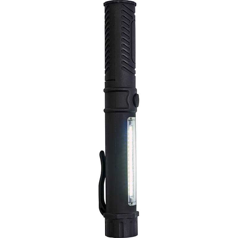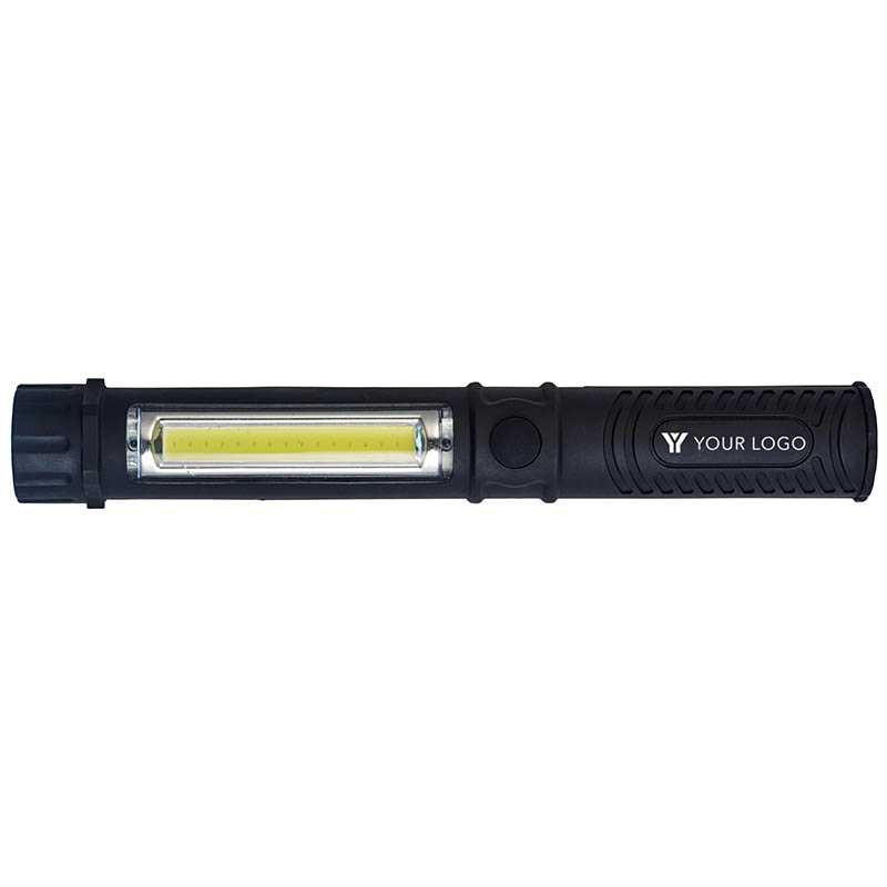 Aluminium COB flashlight with a magnet on the bottom as well a metal pocket clip. Batteries included.
