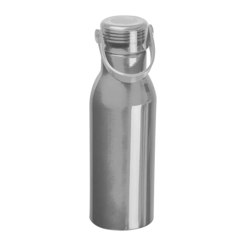 Recyklovaná hliníková fľaša s priehľadne zafarbeným viečkom, objem: 600 ml. Ekologická a praktická na cesty.