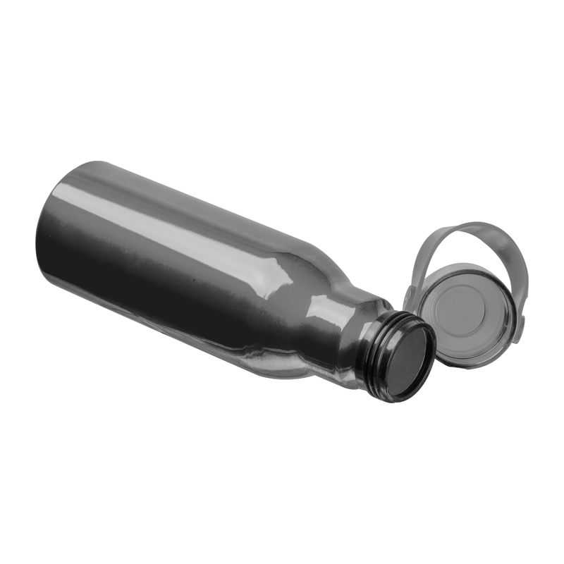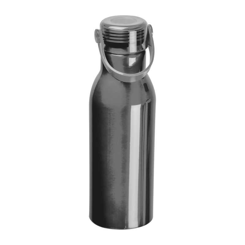 Recyklovaná hliníková fľaša s priehľadne zafarbeným viečkom, objem: 600 ml. Ekologická a praktická na cesty.