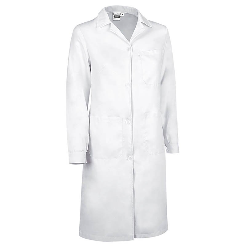 Women´s Long Sleeve Slim Fit Lab Coat. Made of a sturdy cotton twill fabric blended with polyester for strength and durability.A wide V-neck shirt collar, for optimal comfort and a refreshing feel, button fastening cuffs for a better adjustment.Right to left button front closure and a waistband with sewn-on-tape at the back for added comfort. Two front pockets and a left chest patch pocket for convenient storage and showcase the branding. Suitable marking methods: screen printing, vinyl application, transfer printing, embroidery.Ideal as workwear and uniforms.