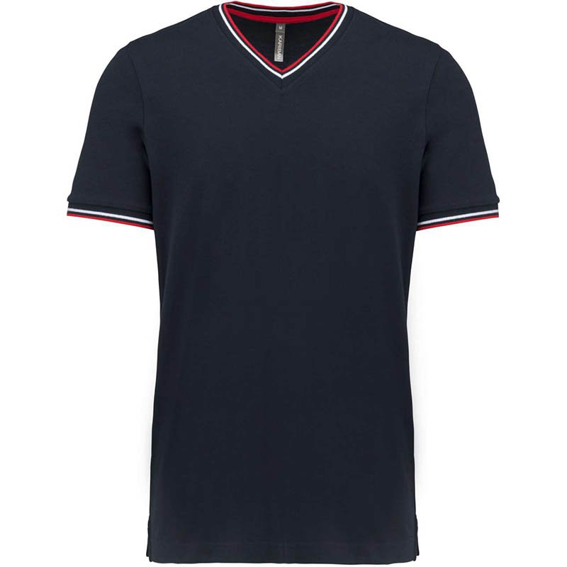 100% piqué cotton (180 g/m2) short-sleeved polo shirt with three-colour trims and two-button collar. Sizes: S/M/L/XL/XXL