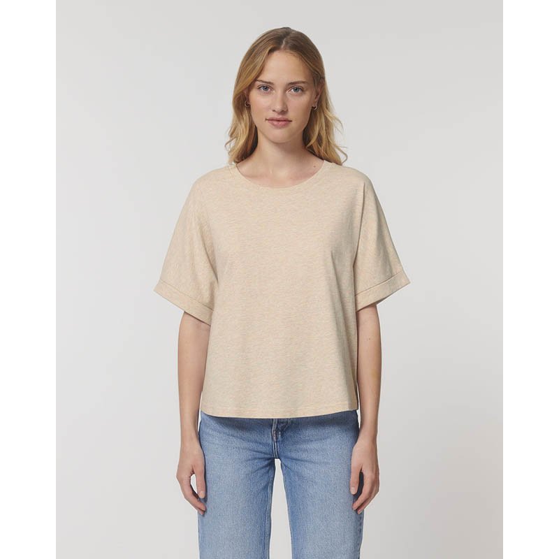 Dolman sleeve 1x1 rib at neck collar Inside back neck tape in self fabric Sleeve cuff folded with bartacks Round bottom hem with wide double needle topstitch (back length longer than front length)
