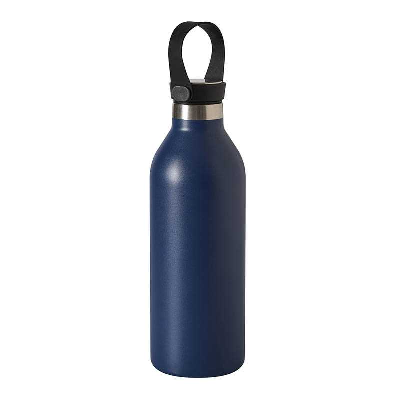 NOVINKA 2025. Vacuum insulated bottle STEEL LOOP, double-walled: inside and outside made of stainless steel, matte powder coating, plastic lid with secure screw cap and silicone carrying loop, upper lid surface made of stainless steel, capacity approx. 50