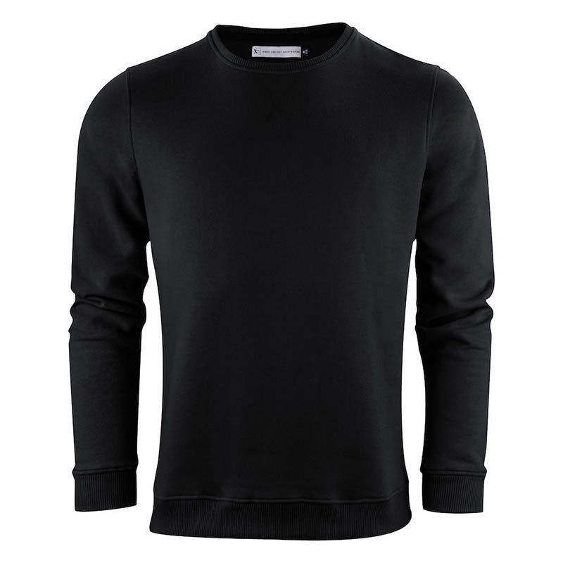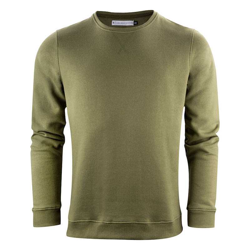 Crewneck sweater with half-moon in the neck. Brushed inside. Ribbed ending at sleeves and bottom hem. Oeko-Tex 100. Colors: 120 grey melange, 600 navy, 704 moss green, 900 black New version 85% organic cotton, 15% recycled polyester, 300 g/m2 Old version 80% organic cotton, 20% recycled polyester, 300 g/m2 S-3XL