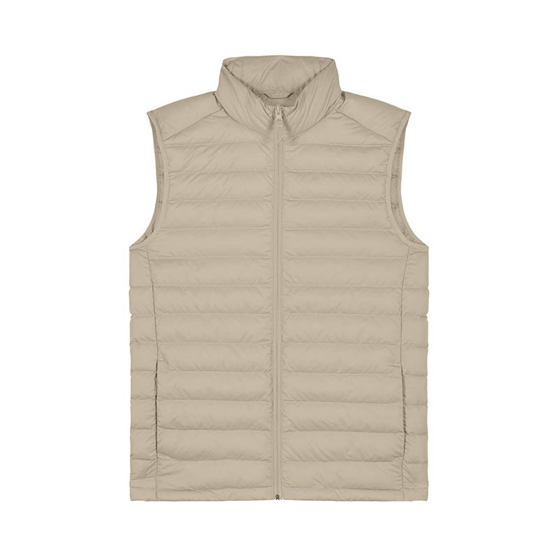 NOVINKA 2025. Sleeveless High collar Reverse nylon zip at center front Zipped welt pockets with extra grosgrain puller Elastic tape binding at armhole Fully quilted Side panels for better shape Inside seams with binding finish
