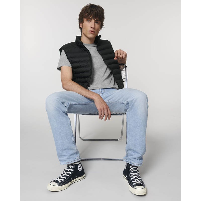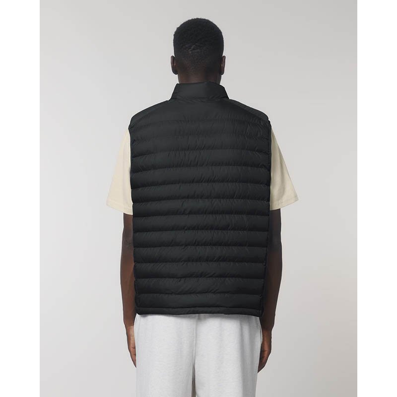 GRS ripstop polyester 360T potažený PU. Mírně zateplená vesta. Recyklovaný polyester. Zateplená prvotřídním polstrováním DuPont™. Ripstopová tkanina 1x1 v matném provedení. Zip SBS. Vnitřní kapsa. 2 velké přední kapsy. Nastavitelný lem se stahovací šňůrko