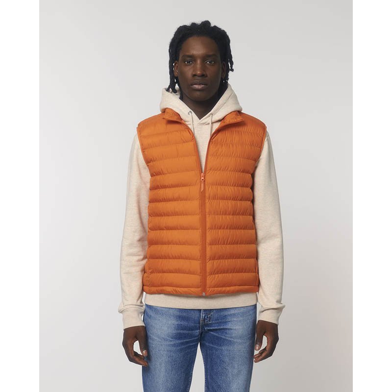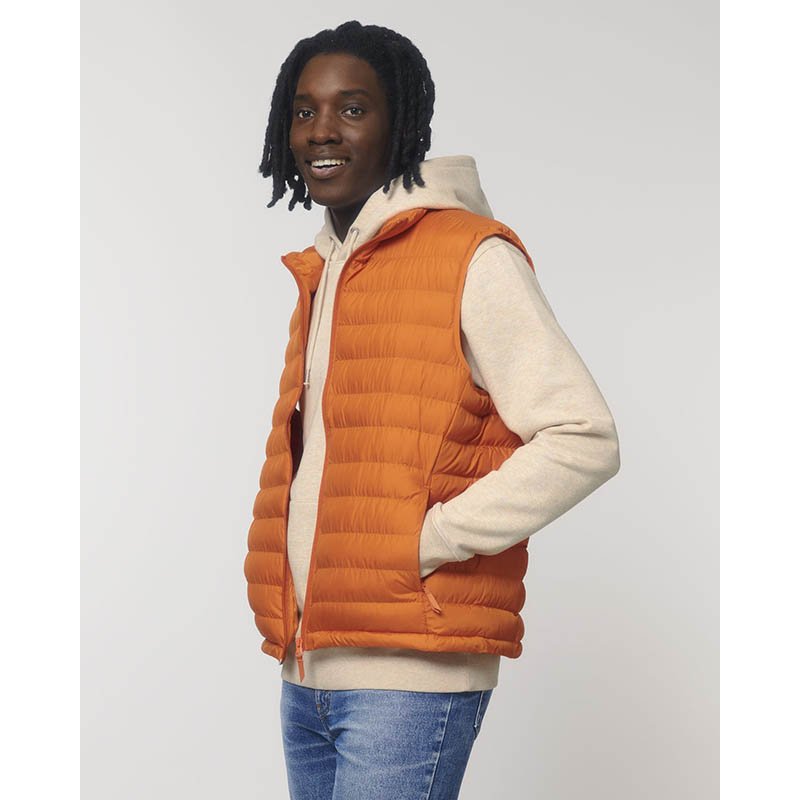 Polstrovaná vesta v zajímavé kombinaci materiálů Přední a zadní díl je prošitý, boky jsou strečový fleece Teplá a prodyšná, vytepleno soronou®AURA (obnovitelná surovina) Zip po celé délce, límec stojáček 2 boční kapsy na zip, 2 vnitřní kapsy Značkové zipy