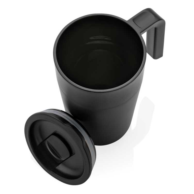 Termohrnček s viečkom so zasúvacím systémom pre ľahké pitie. Ideálne na cesty do práce alebo dopriania si obľúbeného nápoja v práci. Vyrobené z GRS recyklovaného PP plastu (vnútorná stena, viečko a madlo) a GRS recyklovanej nehrdzavejúcej ocele. GRS (global recycled standard) zaručuje kompletne certifikovaný dodávateľský reťazec, čím je možné garantovať skutočné obsiahnutie recyklátu. Podiel použitého recyklovaného materiálu vzhľadom na celkovú váhu produktu: 60 %. Bez BPA. Objem: 480 ml. Balené v FSC kraftovej krabičke.