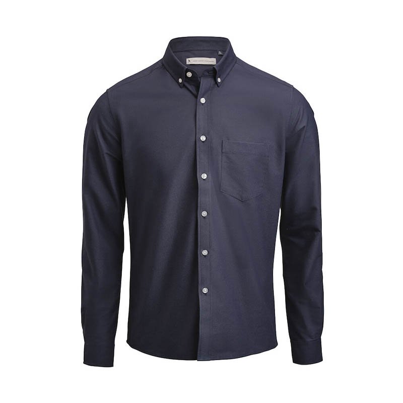 NOVINKA 2024. Oxford shirt with button down collar and chest pocket. Pearl coloured buttons attached with white button thread. Delivered in a biobased, compostable bag. Colors: 100 white, 500 light blue, 600 navy Material: 60 % cotton, 40% recycled polyester 180 g/m2 S-4XL