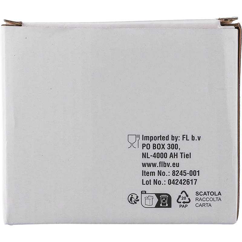 Enamel drinking mug (550 ml) with stainless steel edge. Individually packaged in a brown cardboard box.