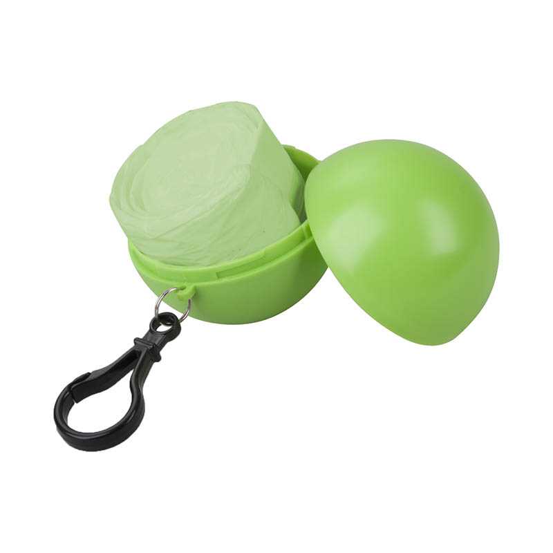 PVC Poncho in an ABS plastic ball with a snap hook attachment.