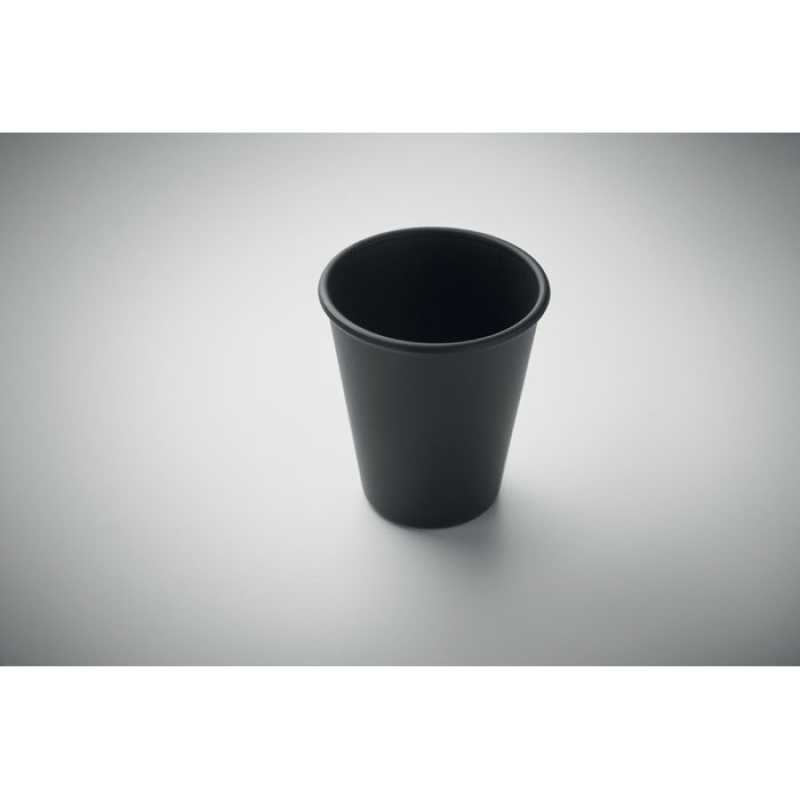 Opakovaně použitelný jednostěnný kelímek z kukuřičného PLA. Objem 200 ml. Protože se jedná o jednostěnný hrnek, může docházet k přenosu tepla od nápoje.